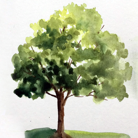 Lorsqu’on veut représenter un paysage réaliste on se demande souvent comment dessiner un arbre ou représenter son feuillage. En préparant de jolis mélanges de vert à l’aquarelle, en les dégradant du plus clair au plus foncé, essayant d’oublier un peu la symétrie.. ajoutant le tronc et quelques branches, on obtient un très bel effet. Pendant ce stage on va peindre plusieurs types d’arbres en utilisant le pinceau et l’éponge pour expérimenter les différents effets.